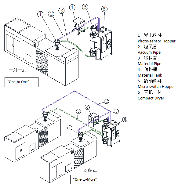 7. 熱料輸送可選配熱風(fēng)回路密閉輸送裝置,可有效避免原料污染和回潮;
