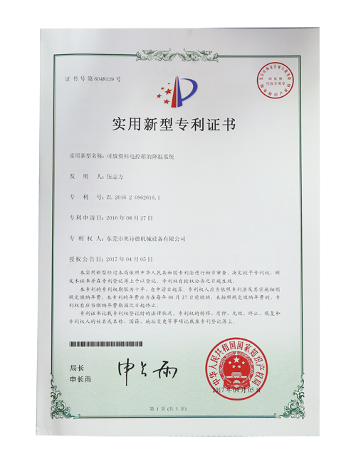 可放資料電控箱的降溫系統(tǒng)專利證書
